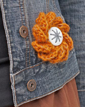 The Tíra Radiant Flower Brooch is hand crocheted locally from a blend of Icelandic wool (Lopi) and a high-intensity reflective thread. Center button made from recycled rubber and sewn on with high-intensity reflective thread. Nickel-free pin on back. Wear as a stylish accessory during the day, and improve your visibility at night.