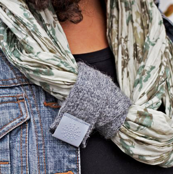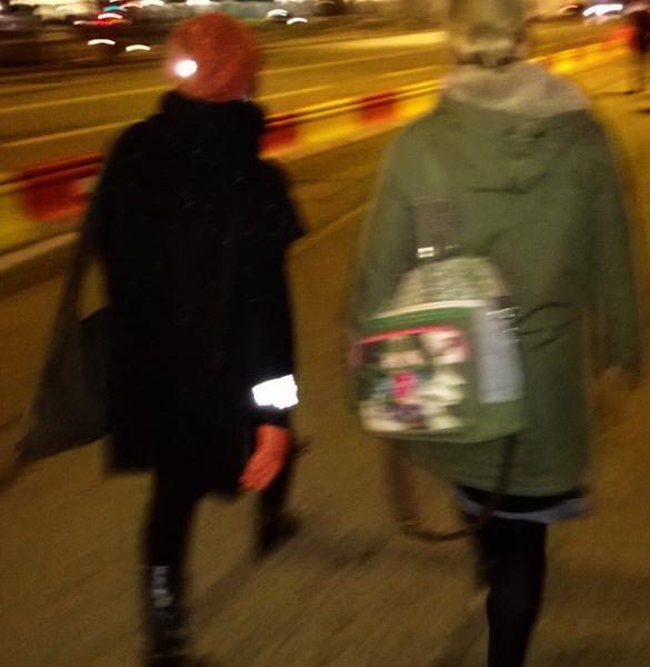 The Tíra Radiant Strap is knit locally from a brilliant blend of Icelandic wool (Lopi) and a high-intensity reflective thread. Added reflectivity from a core made of reflective snap-band (specially made for Tíra, 45cm long) and a flap made from reflective leather. Wear on wrist, ankle, or strap onto your bag to improve your visibility at night. The perfect accessory for the person who wants to stay safe and stylish while they commute or cycle.